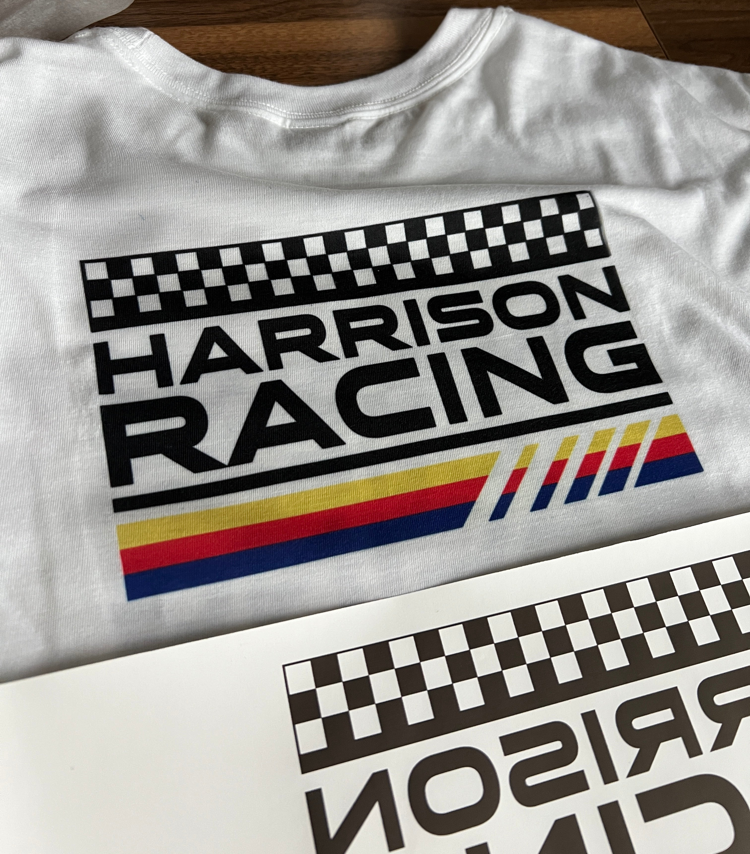 The racing shirt example was pressed using a Cricut Easypress 2 at 380 degrees for 60 seconds.